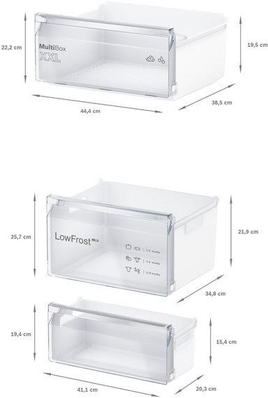 • 1 MultiBox: gjennomsiktig skuff med bølget bunn - perfekt til oppbevaring av frukt og grønnsaker