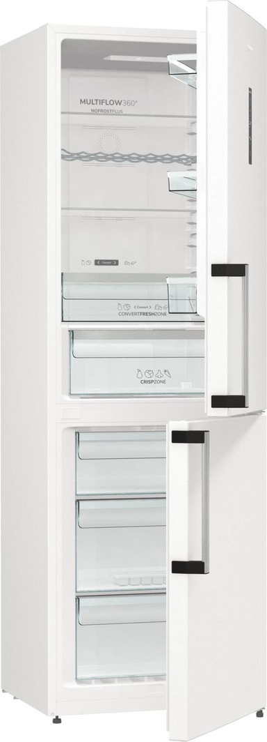 Gorenje NRK619CA2W5 kombiskap har 300 liter lagringskapasitet og en stillegående drift på 35 dB, og er utstyrt med banebrytende funksjoner som AdaptTech, Inverter-teknologi for energieffektivitet og Multiflow 360 luftsirkulasjon. CrispZone med fuktighetskontroll og Convert FreshZone gir allsidighet for alle dine oppbevaringsbehov. Den slanke, innfellbare designen med utvendige håndtak gir bedre tilgjengelighet og bekvemmelighet.