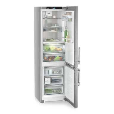 Liebherr CBNsda 575i-22 001 kjøleskap/fryser kombinerer elegant design i rustfritt stål med BioFresh-teknologi for optimal ferskhet, 362 liters kapasitet og smart hjem-integrasjon i en kompakt ramme på 201x60 cm.Les mer om produktet