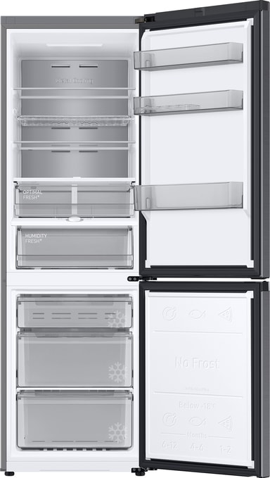 Med dette kombiskapet fra Samsung får du en perfekt oppbevaringsløsning for alle matvarene dine. Det har en stor kjøleskapskapasitet på 230 liter og en frysekapasitet på 114 liter, gjort mulig av SpaceMax-teknologien. Ta fullt utbytte av de innovative Optimal Fresh+ og Humidity Fresh+ skuffene, samt All-Around Cooling for optimale oppbevaringsforhold. NoFrost, Power Cool/Power Frost og Clean Back gjør kombiskapet til et praktisk kjøkkenapparat.