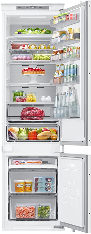 Denne kjøle-/frysekombinasjonen har et elegant, integrert design som passer sømløst inn i moderne kjøkken.