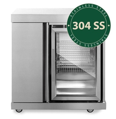Frittstående modul med kjøleskap og oppbevaringsskap i rustfritt stål. Kjøleskapet har kompressorkjøling og kan holde 3-16°C. Modulen har også et stort oppbevaringsskap for tørrvarer. Passer perfekt inn i utekjøkkenet!
