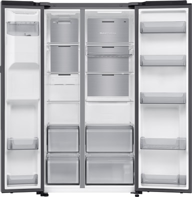 Samsung side-by-side RS90F64EDTEF tilbyr et elegant design kombinert med praktiske funksjoner. Den har et 401 liters kjøleskap og 220 liters fryser, noe som gir rikelig med plass til alle dine matvarer. All Around Cooling-teknologien sikrer jevn luftsirkulasjon, slik at maten din holder seg fersk lenger.