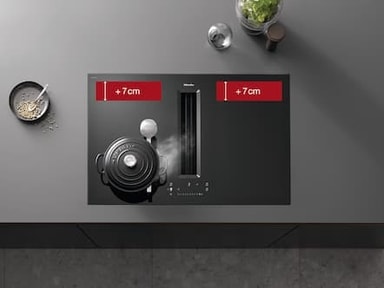 Redusert design: Mieles ventilatorer er diskrete og elegante – og oppfyller høye krav når det gjelder estetikk og funksjonalitet. Med innfelte ventilatorer kan du enkelt skyve gryter og panner på platetoppen din – uten noen barrierer.