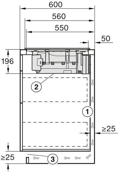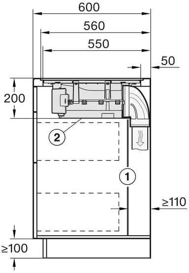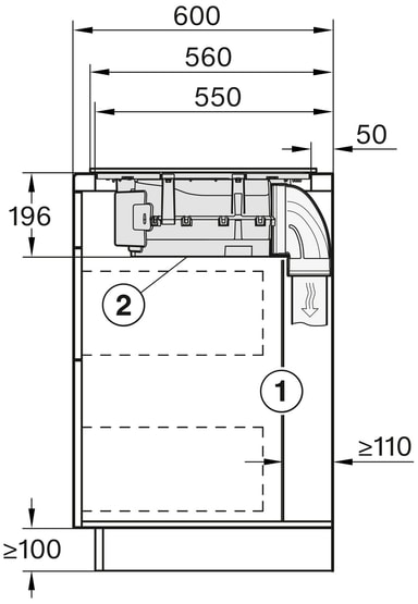 Den integrerte ventilatoren holder kjøkkenet fritt for røyk og damp takket være kraftig sugekraft på 530 m3/t, fire hastigheter og et 10-lags rustfritt stålfilter.