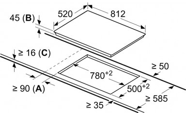 - 82 cm bred keramisk platetopp