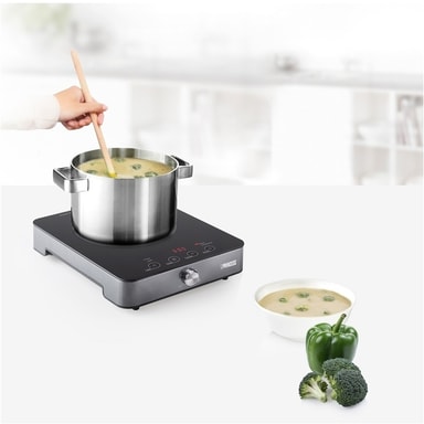Induksjonstoppen varmes opp svært raskt og er enkel å håndtere.