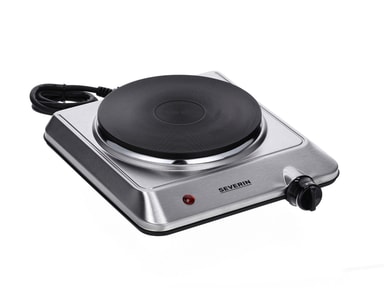 Severin KP 1092 elektrisk kokeplate med 1500 watt, for privat bruk Massekokeplate Velegnet for små kjøkkener Overdel av børstet rustfritt stål Varmeplate: diameter 18 cm Trinnløs temperaturjustering Kontrollampe Mål: L 25 x B 28,5 x H 8 cm