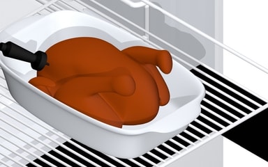 Varmen spres optimalt på opptil tre nivå i stekeovnen på samme tid, og sikrer at maten blir stekt på riktig måte.