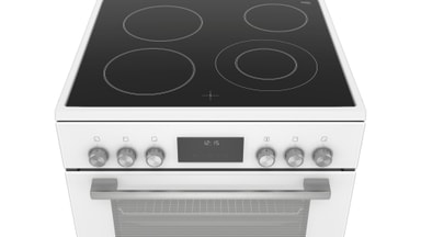 Den keramiske platetoppen har fire tradisjonelle kokesoner som varmes raskt opp, hvorav en passer til større kokekar. For høyere sikkerhet er platetoppen utstyrt med en indikator som viser om kokesonen er varm.