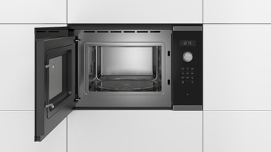 Mikrobølgeovnen BFL554MB0 fra Bosch varmer opp, tiner og tilbereder forskjellige måltider takket være de automatiske programmer, romslige kapasitet og en praktisk minnefunksjon.