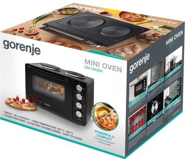 Gorenje miniovn OM30GBX er en kraftig, funksjonell og plassbesparende løsning for deg som elsker matlaging, men som har begrenset med plass på kjøkkenet. Ovnen kan skilte med 30-liters kapasitet, to kokeplater og tilberedningsmuligheter på flere nivåer. I tillegg byr den på flere praktiske tilberedningsmoduser, inkludert varmluft for jevn varmefordeling.
