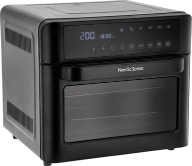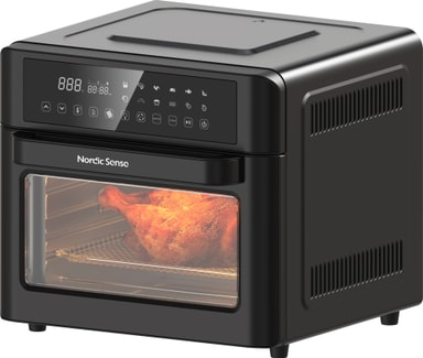 Nordic Sense miniovn 37077 kan brukes som ovn og airfryer. Apparatet har en kapasitet på 25 liter, tolv funksjoner, og elleve innstillinger. Kan brukes til toasting, baking, grilling, og steking – og tilbehøret kan maskinvaskes.Les mer om produktet