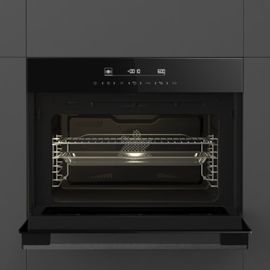 Denne ovnen er superpraktisk takket være mikrobølgefunksjonen, som brukes til rask oppvarming, tining og tilberedning av mat. I kombinasjon med varmluft eller grill kan du bruke den til å steke kylling, tilberede grønnsaker, bake bakverk og mye mer. Det beste av alt er at kombinasjon med mikrobølger gjør matlagingen enda raskere.