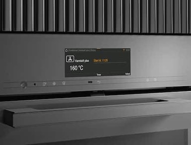 Mieles stekeovner med mikrobølge er godt avkjølt på utsiden. Betjeningspanelet og håndtaket, samt alt interiør rundt ovnen, vil holde seg relativt kjølig. Døren består av flere glassplater. Det isolerer stekeovnsdøren på en effektiv måte og sørger for lave temperaturer på utsiden samt sikkerhet og beskyttelse mot brannskader.