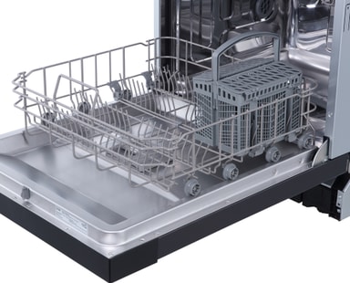 Utforsk denne romslige oppvaskmaskinen med en kapasitet på 14 kuvertplasser, komplett med bestikkurv og brett. Få enkelt plass til oppvasken og redskapene dine for organisert rengjøring hver gang