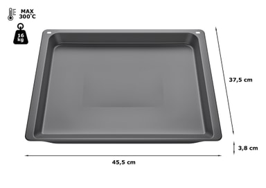 Med Bosch stekebrett HEZ530000 blir alle måltidene dinetilberedettil perfeksjon. Det ekstra dype, emaljerte brettet er kompatibelt med 60 og 45 cm Bosch-ovner i alle serier. Det høykvalitets non-stick-belegget gjør det som oftest unødvendig å smøre brettet. Bakevarer er enkle å fjerne og fettavleiringer enkle å rengjøre. Brettet tåler temperaturer opp til 300°C og holder opptil 16 kg. Ideell for bruk som dryppbrett ved grilling.