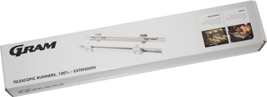 Gram teleskopskinner er praktisk tilbehør for alle stekeovner med 65 liters volum. Disse teleskopskinnene er utstyrt med stopp-funksjon, kan trekkes helt ut og er avtagbare for maksimal fleksibilitet.Les mer om produktet