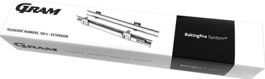 Utstyr din Gram BakingPro-ovn eller komfyr med 77 liters volum i ovnsrommet med teleskopskinner. Disse teleskopskinnene fra Gram kan trekkes 100 % ut og har stopp-funksjon.