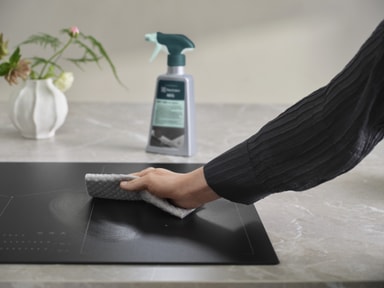 Behold den sofistikerte estetikken i matte platetopper i glass og keramikk, slik som SaphirMatt® og SaphirMatt® SE-platetopper, med Matt Care Hob Cleaner. Hold platetoppen i perfekt stand med denne spesialutviklede dyprengjøringsløsningen.