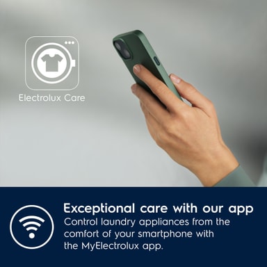 Med MyElectrolux-appen kan du styre maskinene fra telefonen din. Bruk Care Advisor-funksjonen for å få ekspertveiledning om hvordan du best rengjør klærne dine. MyFavourites lagrer innstillinger for klærne du bruker ofte.