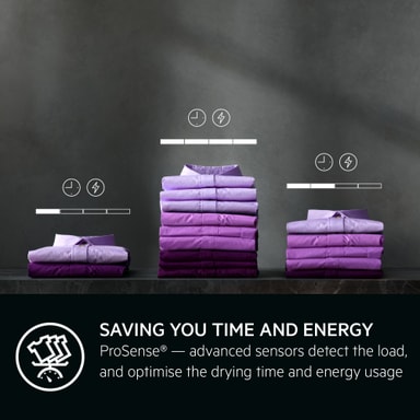 PreciseDry sine avanserte fuktighetssensorer sparer tid og reduserer energiforbruket ved å automatisk justere program basert på mengde vask. Gir riktig klespleie slik at hvert plagg varer lenger.