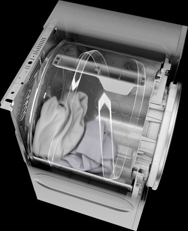 Andre tørketromler på markedet bruker en «omvendt» tørkeprosess. Det betyr at trommelen endrer retning kontinuerlig. ASKO Professional tørketromler beveger klesvasken i et åttetall. Skånsomt, kontinuerlig og i én retning, uten at klærne klumper seg sammen. Dette er også skånsomt for reimen og motoren, slik at tørketrommelen fra ASKO varer lenger.