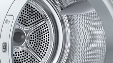 • SensitiveDry-concept: Stor trommel av rustfritt stål med elliptiske medbringere i soft-design
