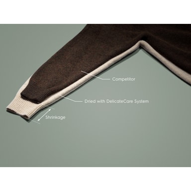 DelicateCare-systemet vårt tilpasser temperatur og bevegelse etter tekstilet, slik at det blir behandlet nøyaktig slik det bør. Klærnes kvalitet blir ivaretatt. *Ull krymper ikke, sammenlignet med flat tørking.
