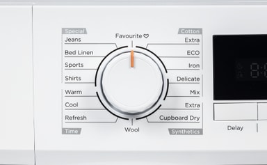 Med utsatt start-funksjonen kan du stille inn tørketrommelen til å starte senere. Enten du vil at den skal gå om natten eller være ferdig når du kommer hjem, tilpasser den seg enkelt din timeplan.