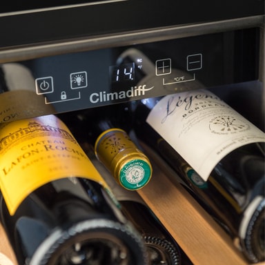 Climadiff-vinskapet sikrer stabilitet for de lagrede vinene ved å forhindre vibrasjoner og støt fra omgivelsene.