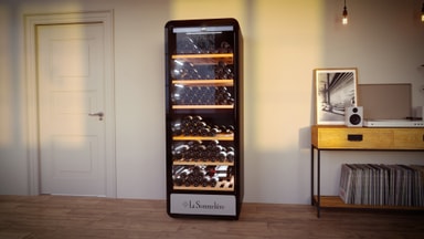 Skapet opprettholder fuktighetsnivåer som egner seg for langtidslagring og er utstyrt med en lavvibrasjonsdesign for å forhindre forstyrrelser under vinmodning.