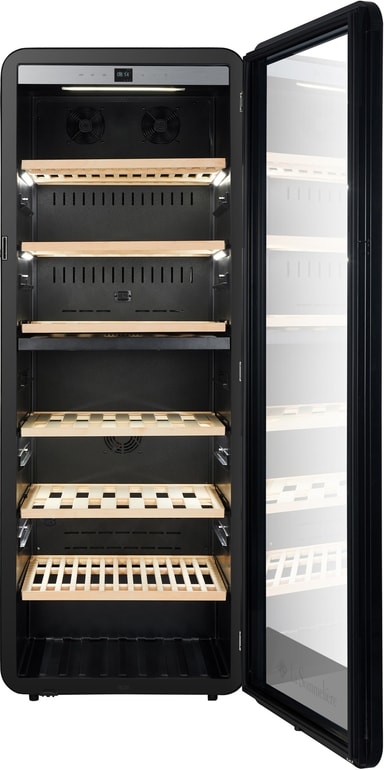 Dette vinskapet med én dør rommer opptil 236 standard Bordeaux-flasker på 0,75 L fordelt på 6 innvendige hyller, og gir god plass til både voksende og etablerte vinsamlinger.