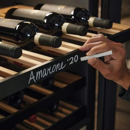 På hver trehylle er det festet en list, som kan skrives på med kritt eller fargestifter for å gi deg en optimal oversikt: Her kan du f.eks. skrive opprinnelse, druesort eller årgang for en vin. Hvert NoteBoard kan tas av for enkel merking.