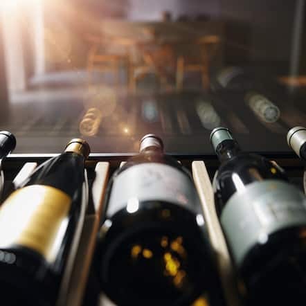 En glassdør med UV-beskyttelse samt UV-fritt LED-lys i vinskapet gir optimale lagringsforhold for din vinsamling. Naturlig lys kan påvirke de verdifulle innholdsstoffene i vinen. Vårt spesialfargede glass hindrer slike uønskede reaksjoner. Dermed kan du presentere dine viner under optimale lagringsforhold, og det over lengre tid – uten å måtte gå på kompromiss med kvalitet eller smak.