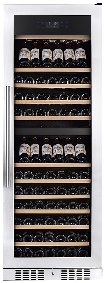 Vinkjøleren tilbyr oppbevaringsplass for opptil 153 flasker vin som du trygt kan plassere på tolv hyller.
