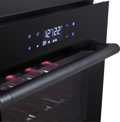 Kontroller temperaturen i de to sonene og skru av og på lyset inne i apparatet takket være touchkontroll på innsiden av skapet.