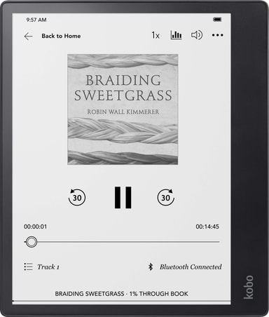 Vennligst merk: Kobo-lydbøker er kun tilgjengelig i utvalgte land og krever trådløse Bluetooth-hodetelefoner eller høyttaler.
