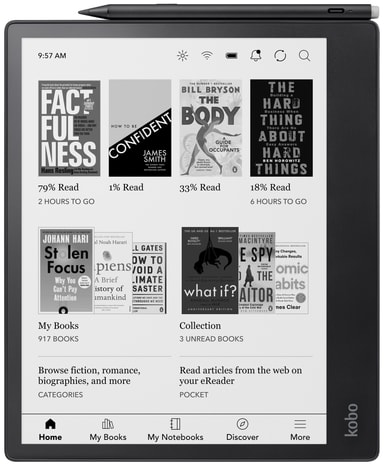 Den kapasitive HD-skjermen sikrer skarp, lettlest tekst og forblir energieffektiv takket være den smarte og gjenskinnsfrie E-Ink-teknologien. ComfortLight PRO lar deg justere lysstyrke og fargetemperatur, slik at du kan begrense skadelig blått lys og redusere belastningen på øynene dine.