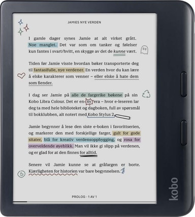 eBook-leseren er kompatibel med Kobo Stylus 2-pennen (selges separat), som gjør at du kan samhandle med de elektroniske bøkene på mer personlig vis, ved å markere med fargereller å skrive notater.