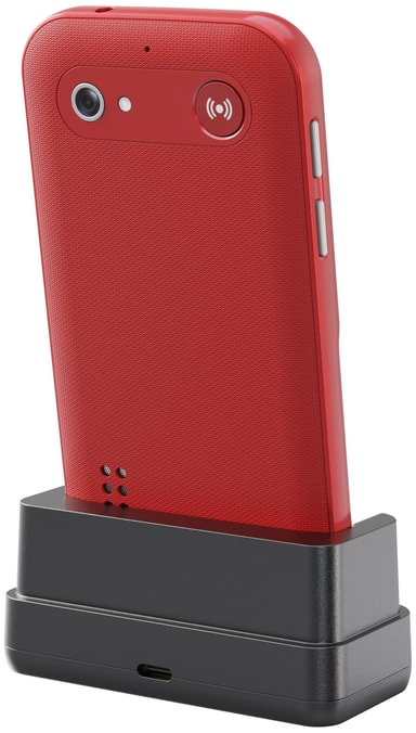 Telefonen har et brukervennlig design med høy kontrast og godt plasserte taster som gjør det enkelt å skrive og ringe.