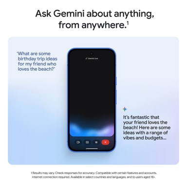 3 Batteritid avhenger av mange faktorer, og bruk av visse funksjoner vil redusere den. Faktisk batteritid kan være lavere. Over tid vil Pixel-programvaren håndtere batteriytelsen for å bidra til å opprettholde batterihelse etter hvert som batteriet eldes. Se g.co/pixel/battery-tests og g.co/pixel/batteryhealth for detaljer.
