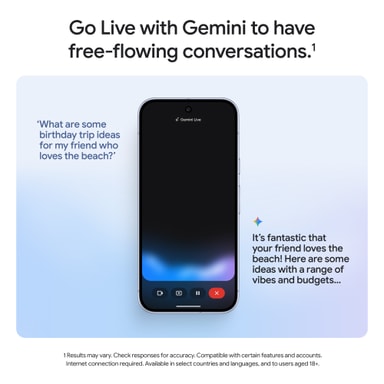 3 Batteritid avhenger av mange faktorer, og bruk av enkelte funksjoner vil redusere den. Faktisk batteritid kan være lavere. Over tid vil Pixel-programvaren håndtere batteriytelsen for å bidra til å opprettholde batterihelse etter hvert som batteriet eldes. Se g.co/pixel/battery-tests og g.co/pixel/batteryhealth for detaljer.