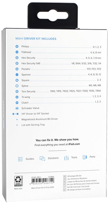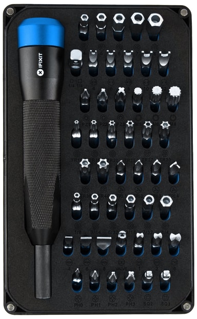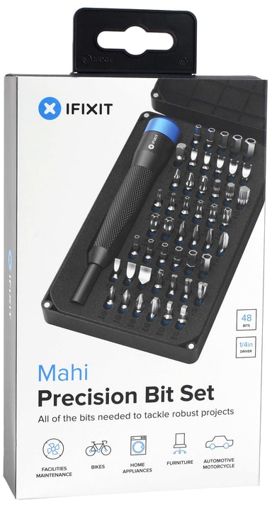 Løs kontakt? Batteri som svikter? Ødelagt plugg? Det er mye som kan skje med ulike apparater, men det meste kan fikses, bare man har det rette utstyret. Her kommer iFixit Mahi bitssett inn i bildet. Det inneholder et bredt utvalg av både kjente og sjeldne industristandardiserte bits. Sammen med det inkluderte skrutrekkerhåndtaket, lar bitsene deg demontere og sette sammen en rekke mindre apparater slik som mobiltelefoner, nettbrett, bærbare PC-er, wearables, gaming-kontrollere og mye mer.