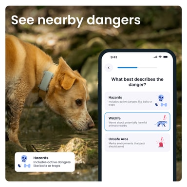 Bruk Tractive GPS-appen for å bidra til å holde samfunnet trygt. Ved hjelp av kartet i appen kan du enkelt rapportere potensielle farer som gift, farlige områder eller ville dyr. I tillegg vil du motta varsler hvis kjæledyret ditt nærmer seg risikoområder som er rapportert av andre brukere.