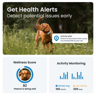 Med sporingsenheten kan du sette deg mål og sammenligne hunden din med lignende raser, følge med på søvnmønster og bjeffing og oppdage problemer på et tidlig tidspunkt, slik at du kan holde vennen din sunn og aktiv.