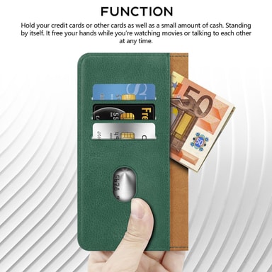 HØYKVALITETSBAR BEHANDLING: Det robuste flipcase-etuiet i vegansk kunstlær gir ideelt grep og omfattende beskyttelse rundt hele telefonen. Booklet-etuiet beskytter begge sider og sikrer langvarig bruk.