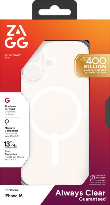 • Zagg iPhone 16 Crystal Palace Snap deksel (gjennomsiktig)