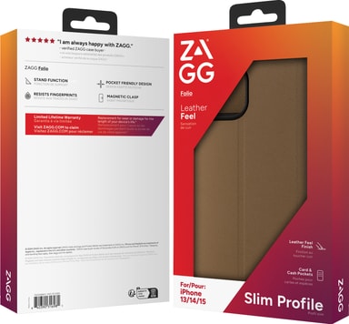 • Zagg iPhone 16e/15/14/13 lommebokdeksel (brun)