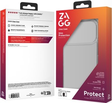 ZAGG klart deksel til iPhone 17 Pro gir robust beskyttelse med gjennomsiktig termoplastisk polyuretan som passer perfekt til skjermen på 6,3 tommer og fremhever Apples design samtidig som det beskytter mot hverdagens slitasje.Les mer om produktet